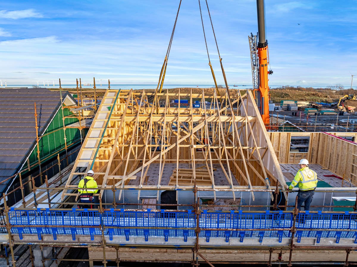 Deeside Timberframe was responsible for the full design, manufacture and erection of the timber frame for all 536 homes. The development includes a range of property types: two-storey terraces, semi-detached homes, cottage flats, and three-storey apartment blocks; as well as community facilities, retail units, and green space.